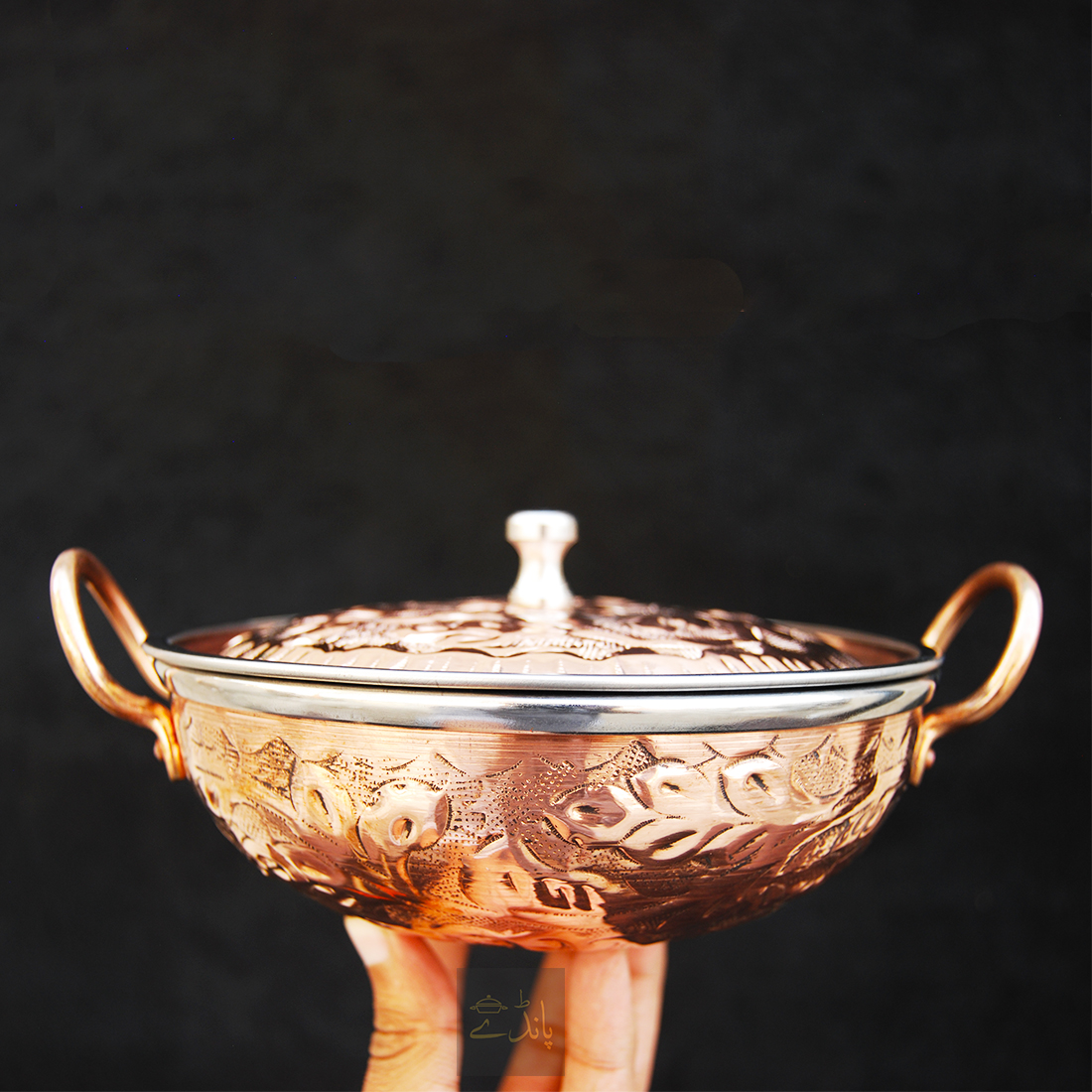Add a touch of traditional craftsmanship to your dining experience with this beautifully handcrafted Copper Serving Karahi. Designed with a stunning Naqshi pattern, this piece combines elegance and functionality, making it perfect for both serving and presentation.
