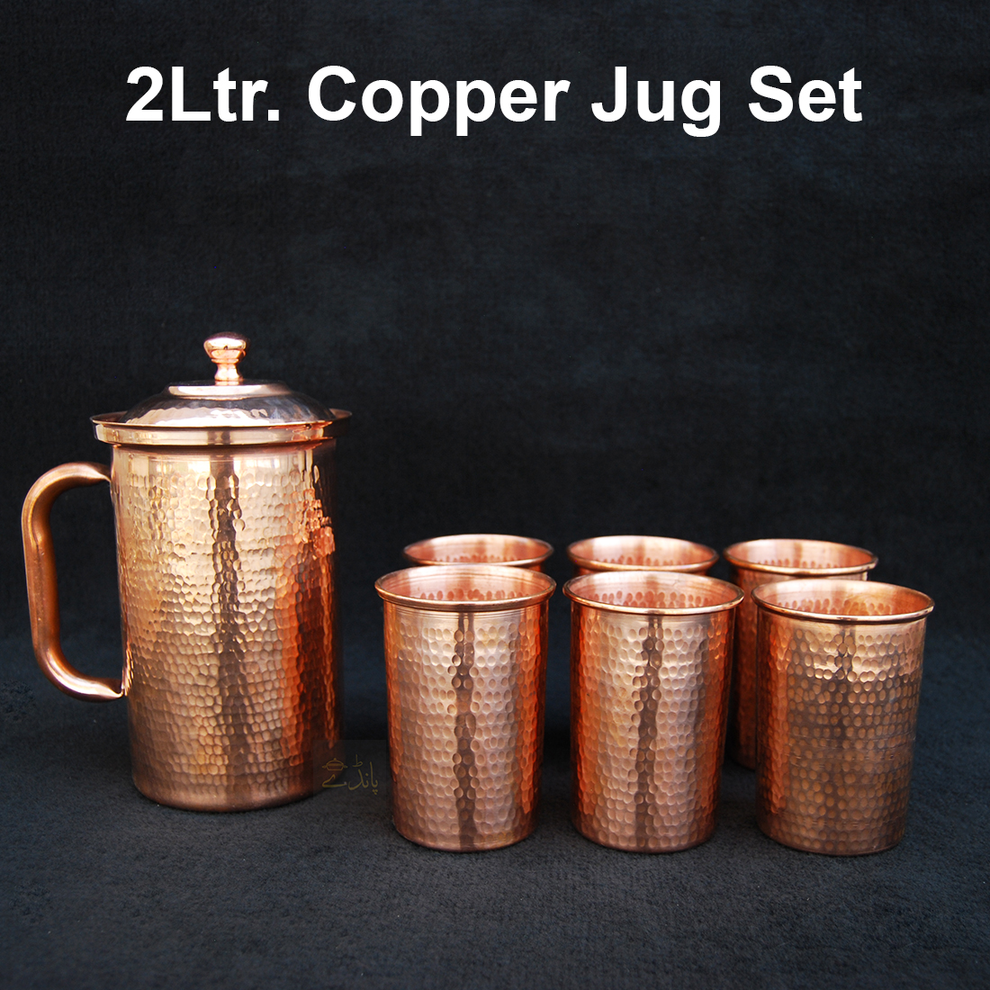 Enhance your everyday hydration routine with this elegant Copper Jug Set, featuring one 2-litre jug and six matching glasses. Expertly handcrafted with a beautiful hammered texture, this set combines traditional artistry with modern elegance—perfect for both daily use and stylish serving.