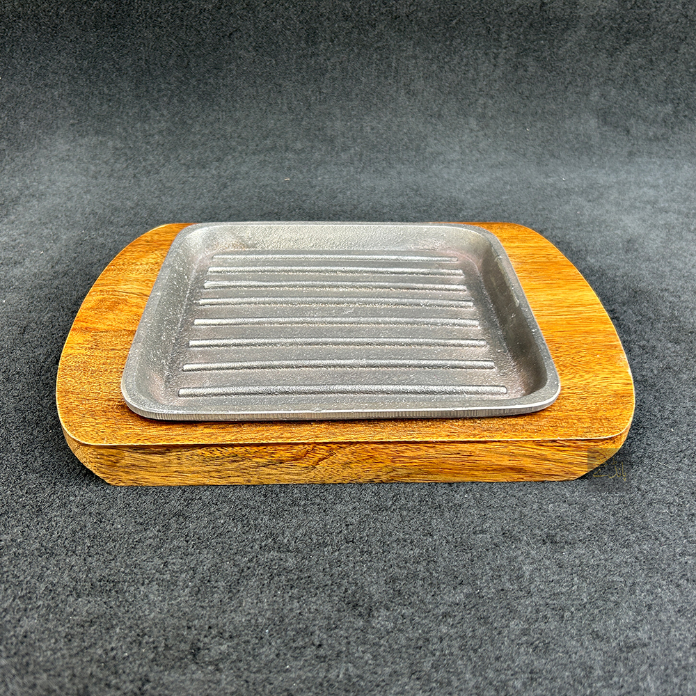 Square Sizzling Tray | Wooden Base | 8.5 inch Tray size | Sizzling plate | new design | Large size